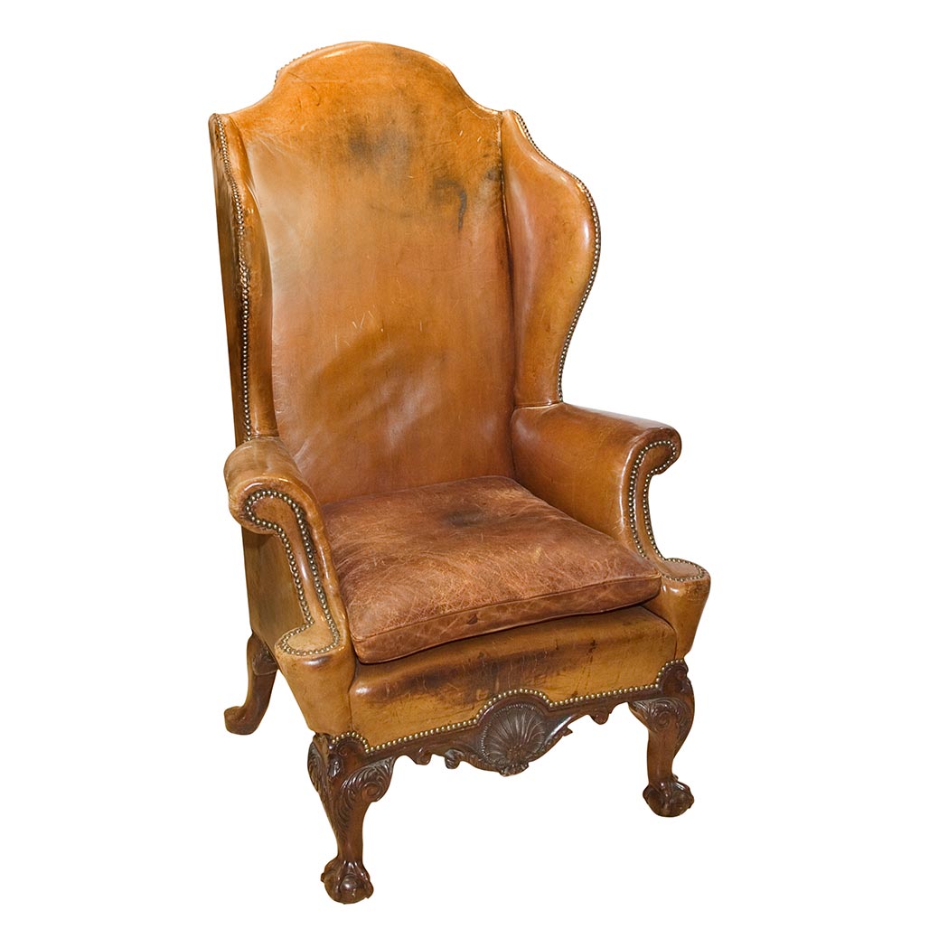 I love the worn in look of this wing chair in leather. It has lots of character, and looks very comfy. This sold at a Doyle New York auction for $3,125 off an auction estimate of $1,000 - $1,500. It has a particularly nice shape, and carving detail.